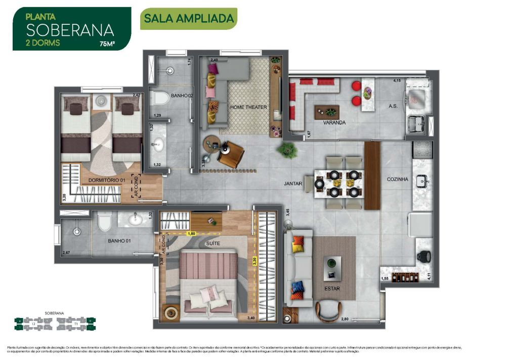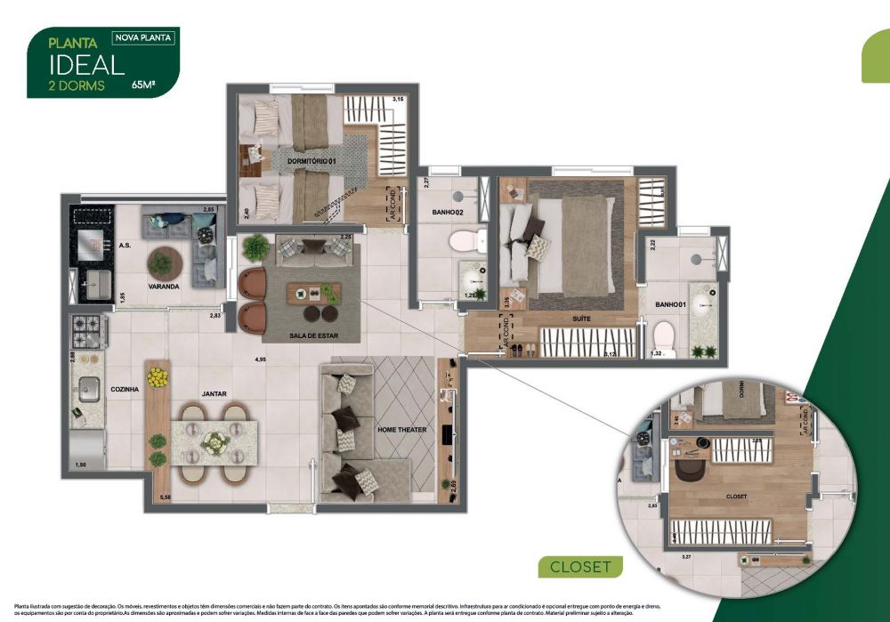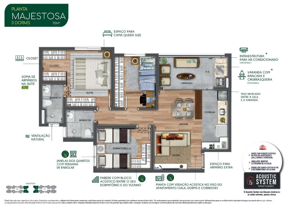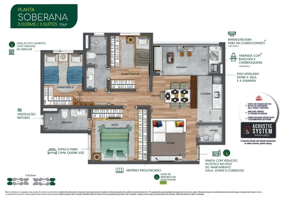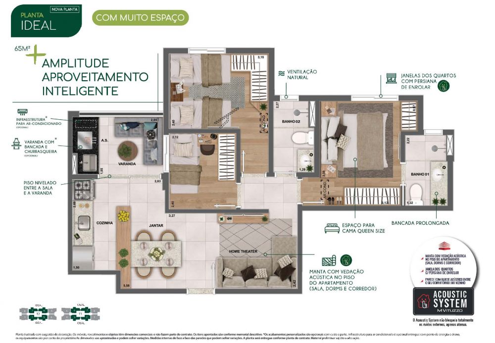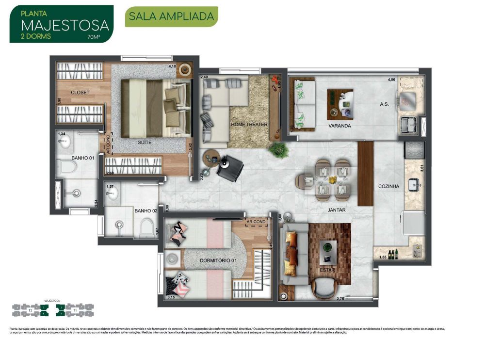 Tipologia das plantas: Ideal 65 m² / Majestosa 70 m² / Soberana 75 m²